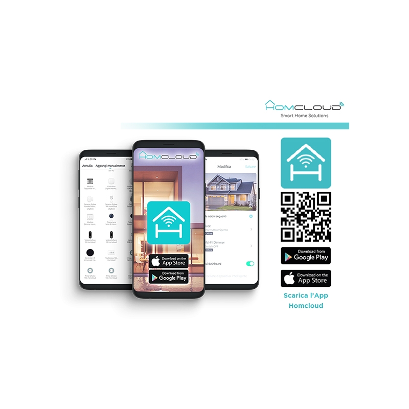 App di controllo Homcloud scaricabile gratuitamente da App Store o Google Play (compatibile anche con App Smart Life).