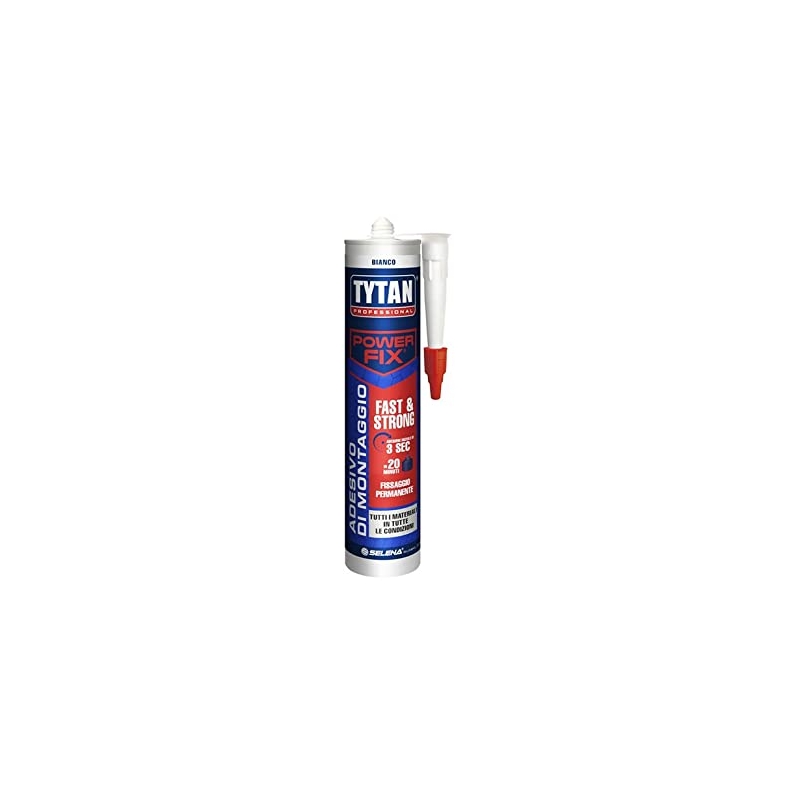 Tytan Professional FAST & STRONG è un adesivo a base di polimero MS, a presa iniziale veloce ed indurimento ultra-rapido. Consente di incollare anche elementi pesanti su superfici verticali senza ulteriore supporto. Forma una connessione molto forte che può essere messa sotto carico già dopo 20 minuti. La sua piena forza viene raggiunta dopo solo 3 ore. È destinato principalmente al settore edile, per l’incollaggio in ambiente interno ed esterno di: pannelli a parete, battiscopa, soglie, tubi di drenaggio, raccordi sanitari.