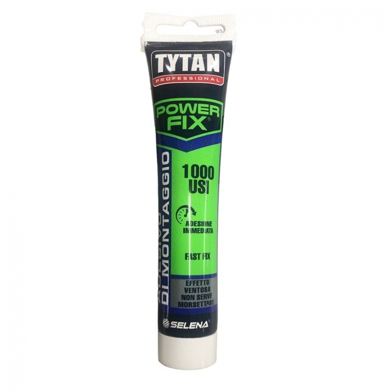 Tytan Professional 1000 USI è un adesivo per montaggi e assemblaggi con un’elevata presa immediata con effetto ventosa, che permette di tenere gli oggetti in posizione evitando sostegni, chiodi, morsetti o puntelli.