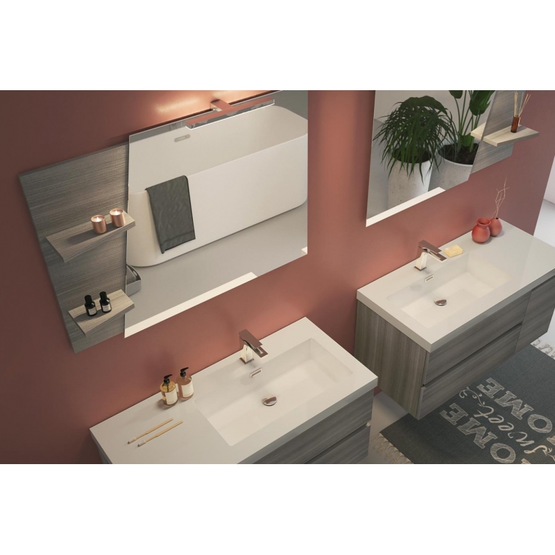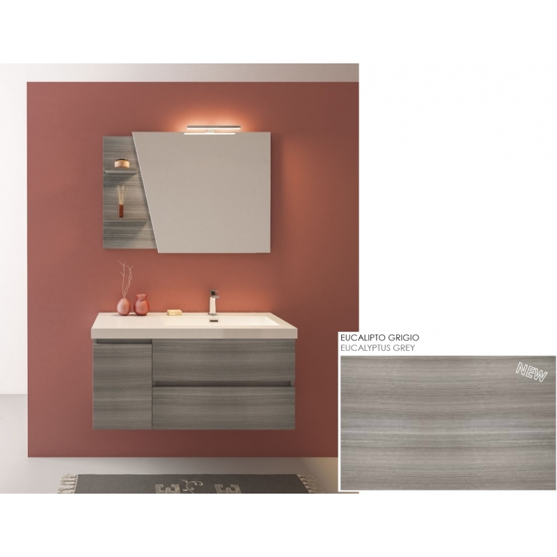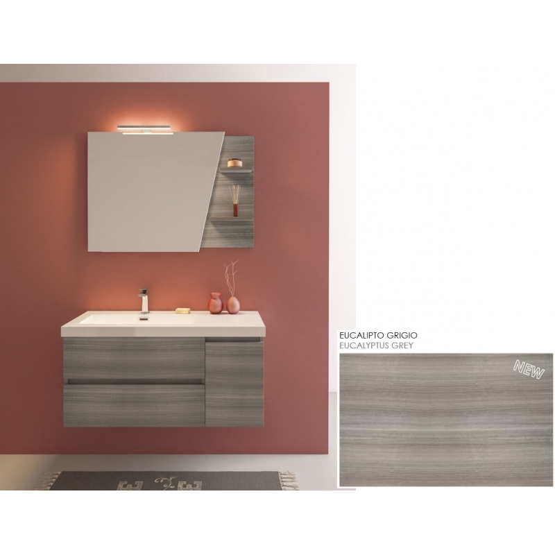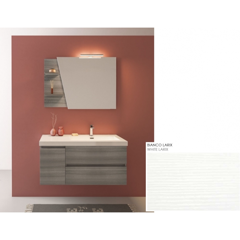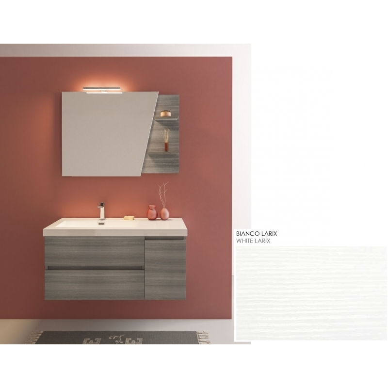 MOBILE BAGNO LINE 04 CM 100 BASE 2 CASSETTI 1 ANTA LAVABO RESINA BIANCO SPECCHIO SAGOMATO LAMPADA LED