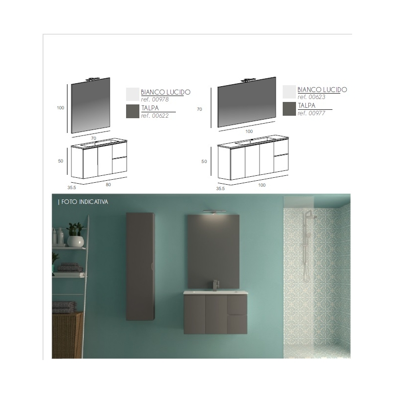MOBILE BAGNO MONTI 02 BASE LAVABO SPECCHIO FILO LUCIDO LAMPADA LED