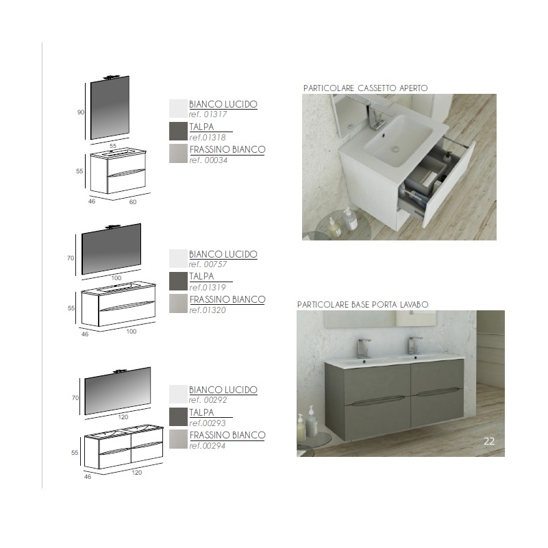MOBILE BAGNO MONTI 07 BASE LAVABO SPECCHIO FILO LUCIDO LAMPADA LED