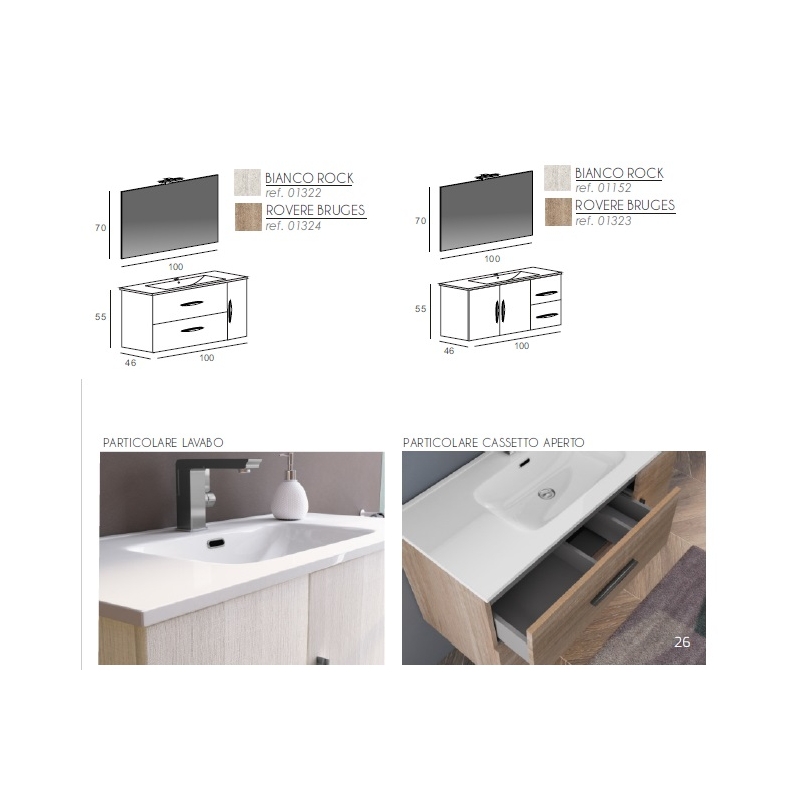 MOBILE BAGNO MONTI 08 CM 100 BASE LAVABO SPECCHIO FILO LUCIDO LAMPADA LED