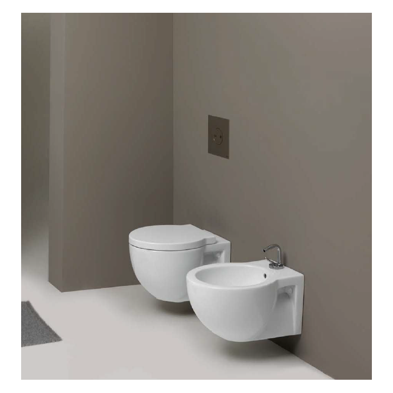 SANITARI COPPIA EASY BATH BIDET MONOFORO VASO CON SEDILE COLORE BIANCO SOSPESI