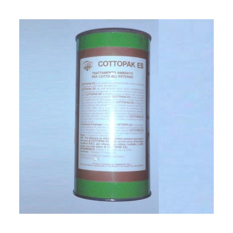 COTTOPAK ES da una tonalità color cuoio soddisfacendo cmpletamente le esigenze di chi vuol ottenere varie tonalità, infatti esso aumenta la sua tonalità color cuoio applicando più mani di prodotto. COTTOPAK ES viene utilizzato per il trattamento di varie superfici in cotto o mattoni quando si vuol ottenere un effetto ambrato. COTTOPAK ES protegge in maniera efficace da schizzi di olio e prodotti acquosi (vino, succhi di frutta, caffè ecc...). Il prodotto rende la superfice fortemente idrofobica e oleofoba impedendo la risalita per capillarità d' acqua e sali (causa delle efflorescenze biancastre) e l' assorbimento dell' olio. La superfice trattata con COTTOPAK ES non pemette il riformarsi di alghe, licheni, evitando le tipiche macchie scure.