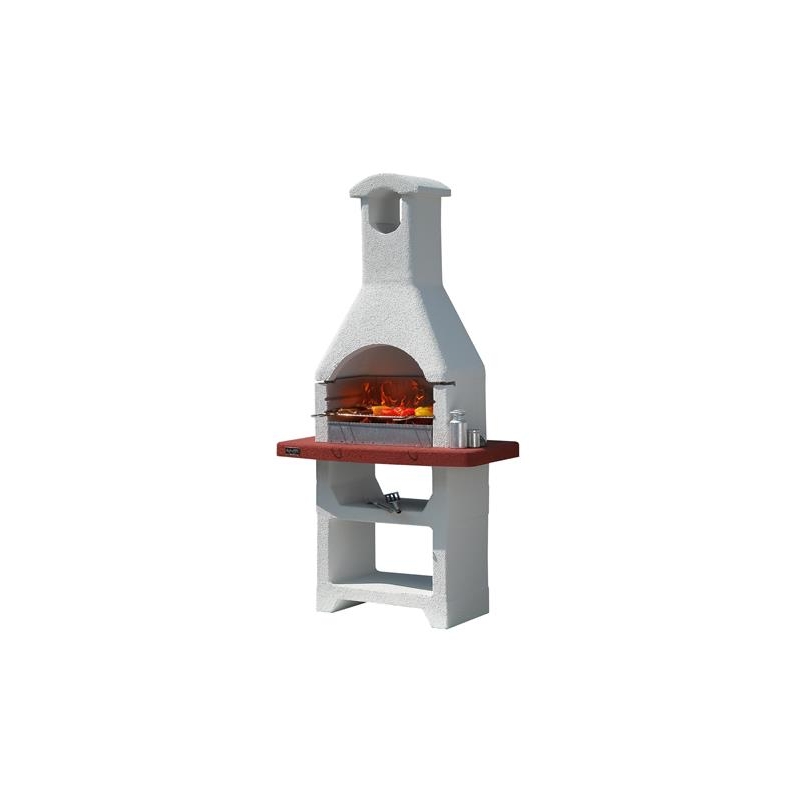 Barbecue con piano di lavoro colorato, realizzato con materiali altamente refrattari, predisposizione per girarrosto