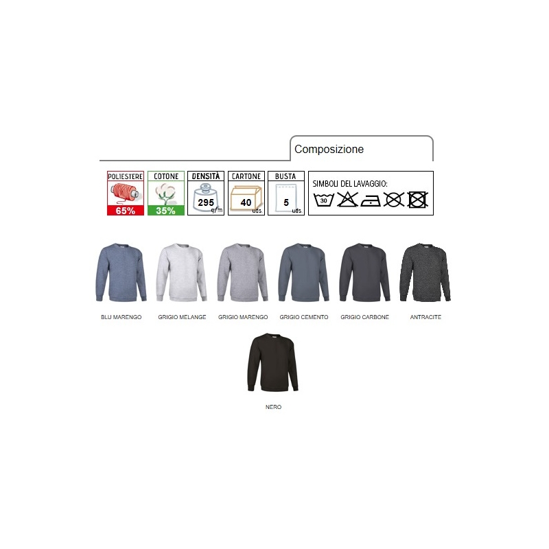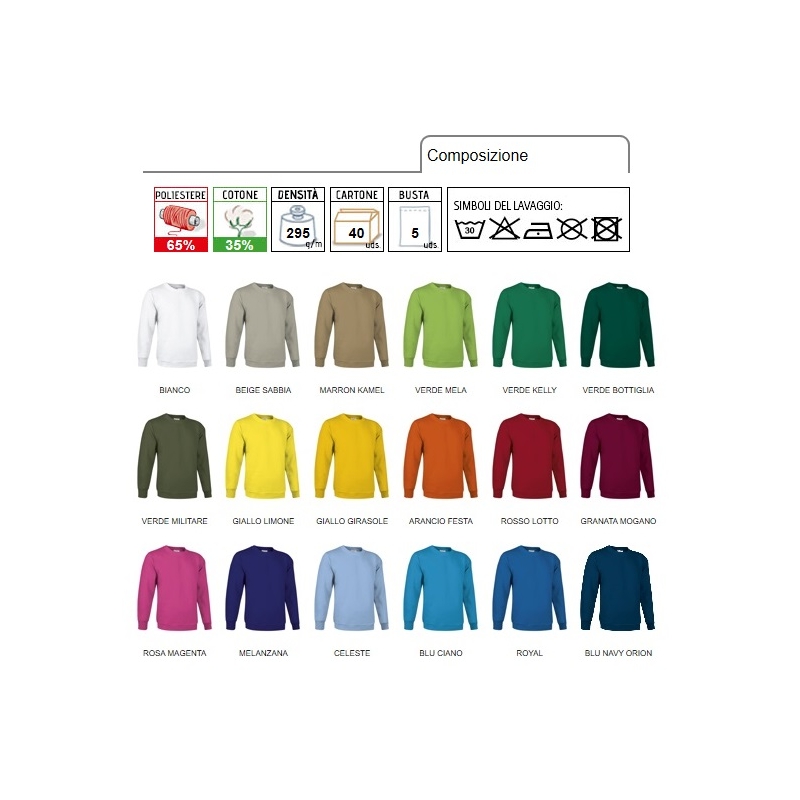 Tessuto felpa interno garzato 295 gr/m2.