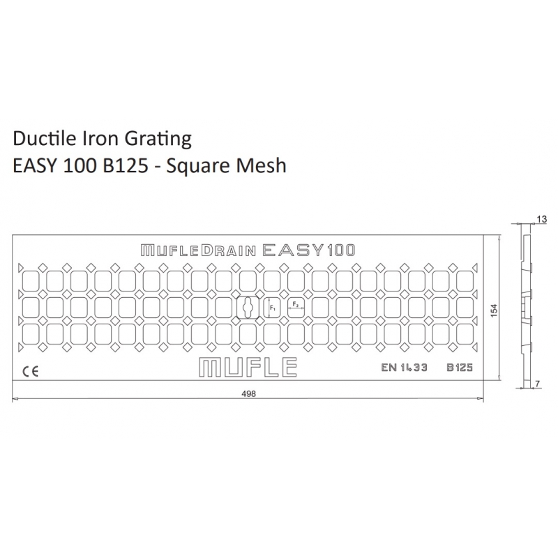 GRIGLIA EASY 100 B125 PER CANALETTE LUNGHEZZA CM 50 LARGHEZZA CM 15 GHISA SFEROIDALE