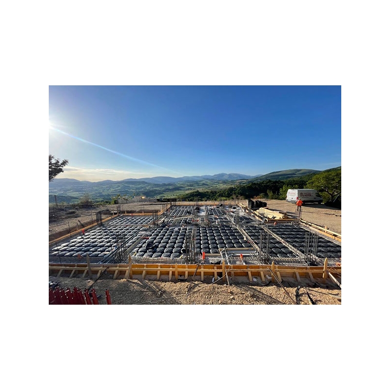 Gli elementi CUPOLEX presentano un design particolare che permette l’aggancio tra le cupole ed un cono centrale per migliorare la pedonabilità e prevenire la formazione di fessure dovute al processo di livellamento con elicottero.