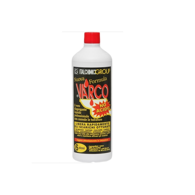 Varco è un prodotto concentrato che non corrode né danneggia tubature metalliche o in pvc. Può essere utilizzato su scarichi di wc, lavabi, sanitari, pozzetti e fosse biologiche.