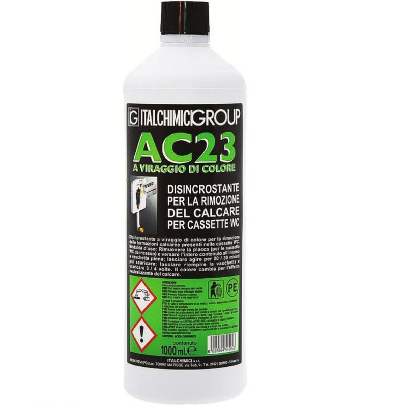 Disincrostante a viraggio di colore per la rimozione delle formazioni calcaree presenti nelle cassette WC, esterne o ad incasso.