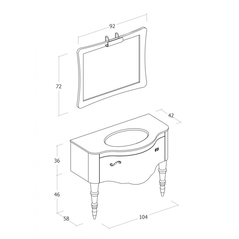 Nr. 1 Base porta lavabo 1 cassetto con piedini cm 104x82 (L X H)