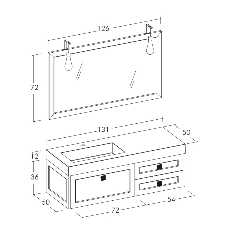 Nr. 1 Base portalavabo 1 cassettone 36x72x49,5 cm (H x L x P)