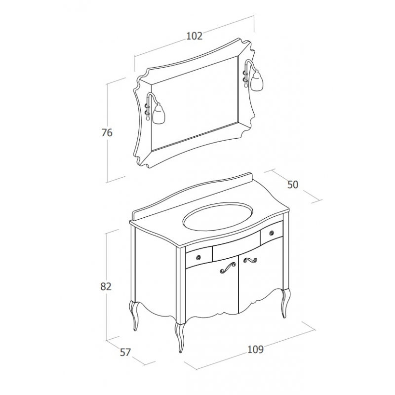 Nr. 1 Specchiera Vanity H 102 x L 76 cm