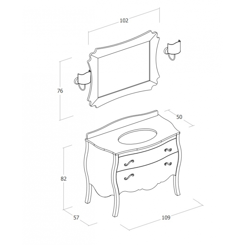 Nr. 1 Base portalavabo 2 cassetti H 82 x L 109 x P 57 cm