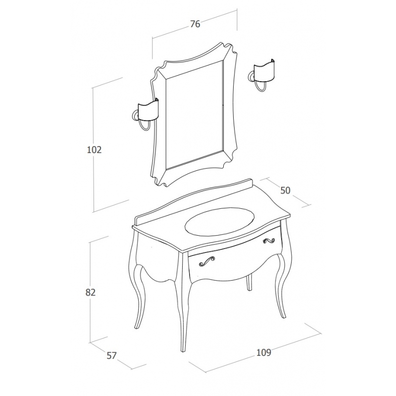 Nr. 1 Specchiera Vanity H 102 x L 76 cm