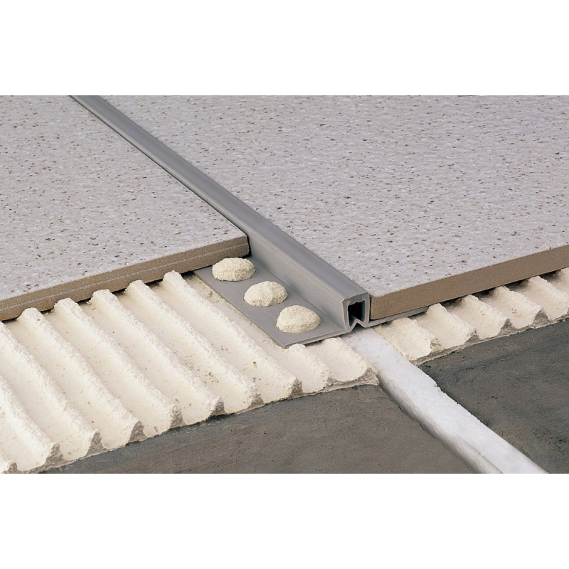 Profilo per giunto di dilatazione, realizzato in PVC coestruso, formato da un corpo rigido e uno flessibile che consentono di assorbire piccole variazioni di movimento offrendo una buona resistenza.