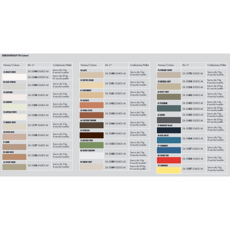FUGANTE RESINA SIGILLANTE CEMENTIZIO DEKOGROUT FS 1-8 MM SACCO