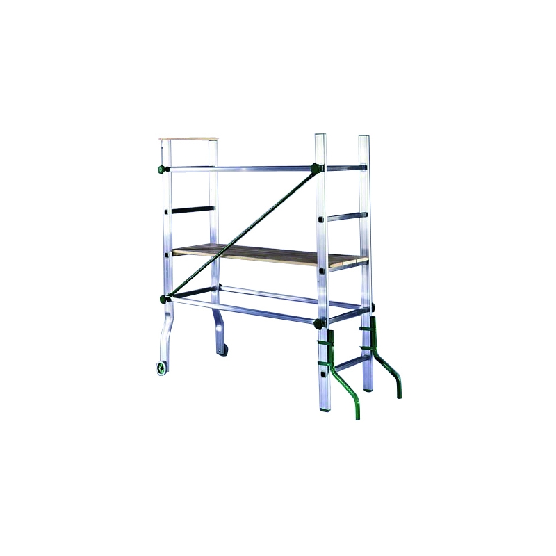 Ingrandisci Trabattello in alluminio, piano di lavoro in legno.