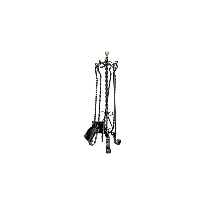 Ingrandisci ATTREZZATURE X CAMINO KIT TORTIGLIONE FERRO BATTUTO POMI IN OTTONE 4 PZ H CM 70