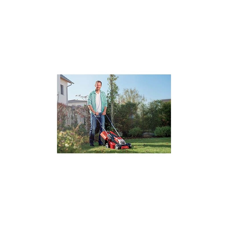 Grazie al tagliaerba a batteria Einhell GE-CM 18/30 Li è possibile mettere in ordine il giardino di casa in maniera semplice e veloce – potente, autonomo, senza fili e rispettoso dell'ambiente. Il tagliaerba a batteria è adatto ad aree fino a 150 metri quadrati di superficie. Grazie alle tecnologia Power X-Change, il tagliaerba lavora tramite una batteria agli ioni di litio ad alte prestazioni da 18 V / 3,0 Ah, che è possibile utilizzare in tutti i dispositivi Einhell della serie di sistema. Questa consente al tagliaerba di realizzare fino a 3.500 giri al minuto, per una larghezza di taglio di 30 cm. L'indicatore del livello di riempimento a batteria con tre LED consente di controllare rapidamente la durata del tagliaerba. Il tagliaerba è dotato di un motore Brushless Einhell, un motore elettrico senza spazzole e un corpo in plastica di alta qualità resistente agli urti. Il motore senza spazzole garantisce più potenza e allunga la durata di funzionamento del tagliaerba a batteria rispetto a un comune motore a spazzole a carboncino. La regolazione dell’altezza di taglio assiale a 3 livelli è una caratteristica confortevole. L'impugnatura di guida ripiegabile consente uno stoccaggio a ingombro ridotto. L'impugnatura per il trasporto permette un trasporto facilitato. Il contenitore di raccolta dell'erba garantisce una capacità di 25 litri. Le ruote di grandi dimensioni antiscalpo non rovinano il tappeto erboso durante la falciatura. Nella dotazione di consegna è incluso, oltre alla batteria Power-X-Change, anche un caricabatteria di sistema di alta qualità.