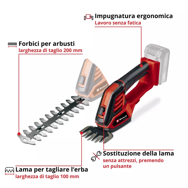 RASAERBA SIEPI ERBA CESPUGLI BATTERIA GE-CG 18/100 LI SOLO MACCHINA VOLT 18 X-CHANGE EINHELL