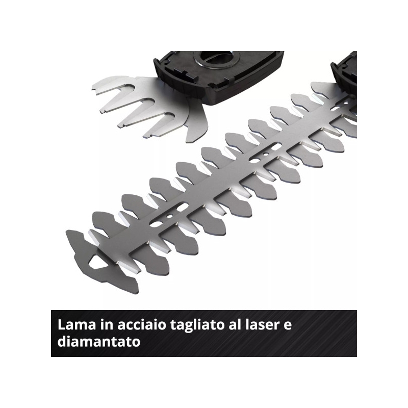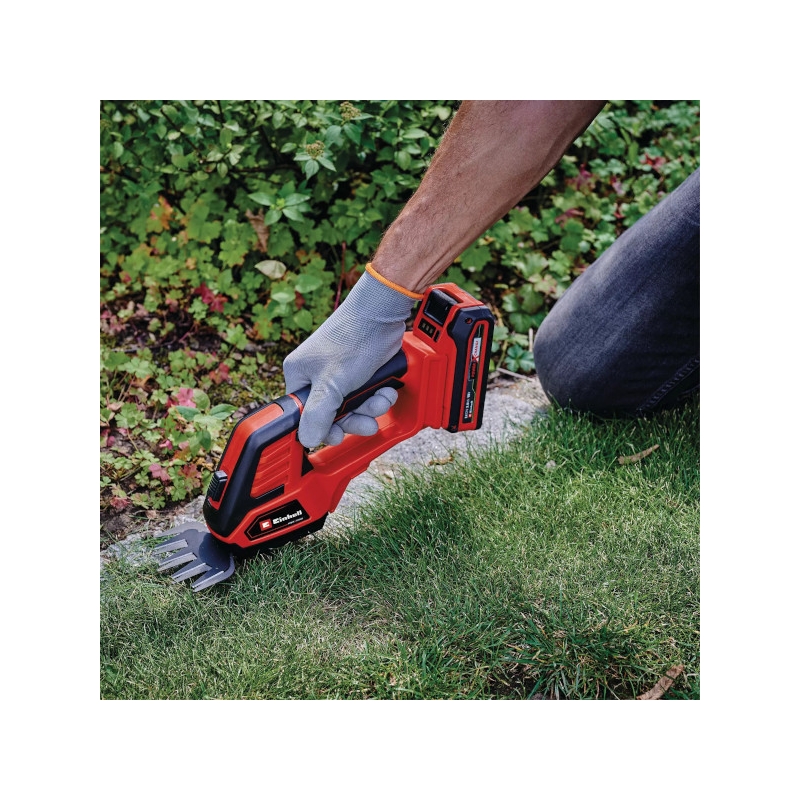 Le cesoie per erba e arbusti a batteria Einhell GE-CG 18/100 Li -Solo sono un membro ad alte prestazioni della famiglia Power X-Change. Lo strumento a batteria è una comoda alternativa alle seghe da potatura manuali o alle cesoie da giardino. È anche più leggero, più silenzioso e più versatile rispetto alle versioni a benzina o elettriche ed è quindi un aiuto ideale quando si tratta di potare, modellare e diradare arbusti e alberi. La lama per tagliare l'erba è perfetta per tagliare i bordi del prato (100 mm). Le lame tagliasiepi, tagliate al laser e diamantate, sono ideali per il taglio di siepi e cespugli. Gli strumenti sono facili da cambiare senza la necessità di altri strumenti. L'impugnatura morbida offre una presa perfetta ed ergonomia per ogni movimento durante l'uso. L'alloggiamento degli ingranaggi coperto fornisce protezione durante l'uso e durante la pulizia contro il contatto con parti lubrificate con olio per ingranaggi. Per il funzionamento è necessaria una batteria PXC da 18 V. La batteria e il caricabatteria non sono inclusi nella fornitura - sono disponibili separatamente.