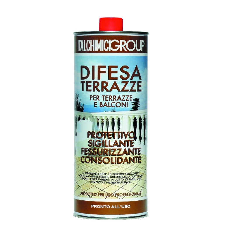 Difesa Terrazze è un impermeabilizzante di profondità, appositamente studiato per la protezione e la cura delle pavimentazioni sospese, quali balconi e terrazze.