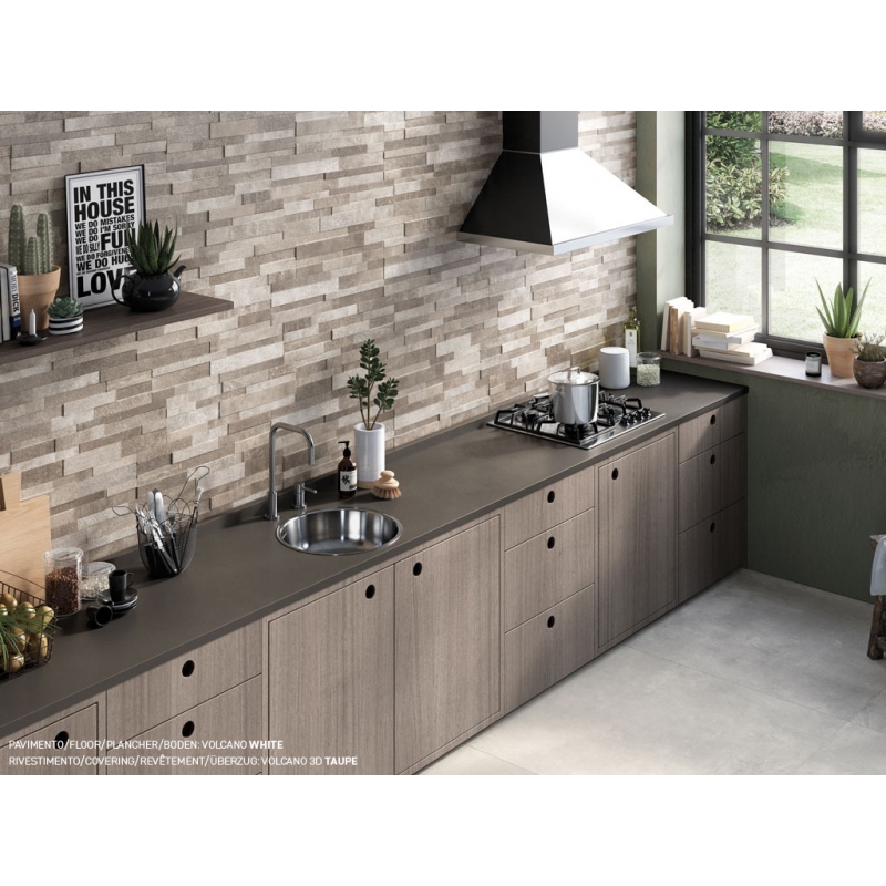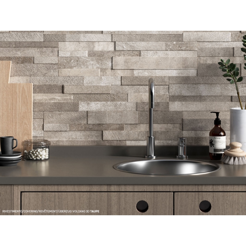 Il grande successo della serie effetto cemento Volcano, ha ispirato la nostra creatività, tanto da proporre lo spirito materico di grande personalità di Volcano anche nella sua totale tridimensionalità.