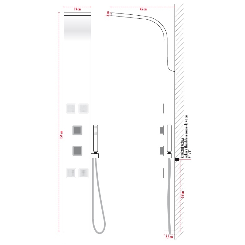 COLONNA DOCCIA MULTIWELLNESS JET D'EAU CM 19X154 ACCIAIO INOX