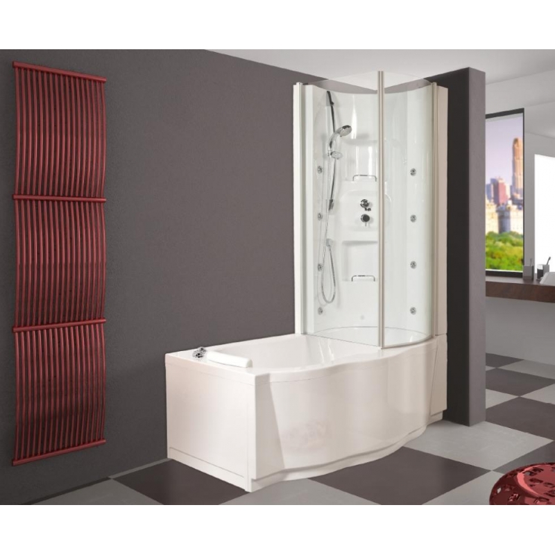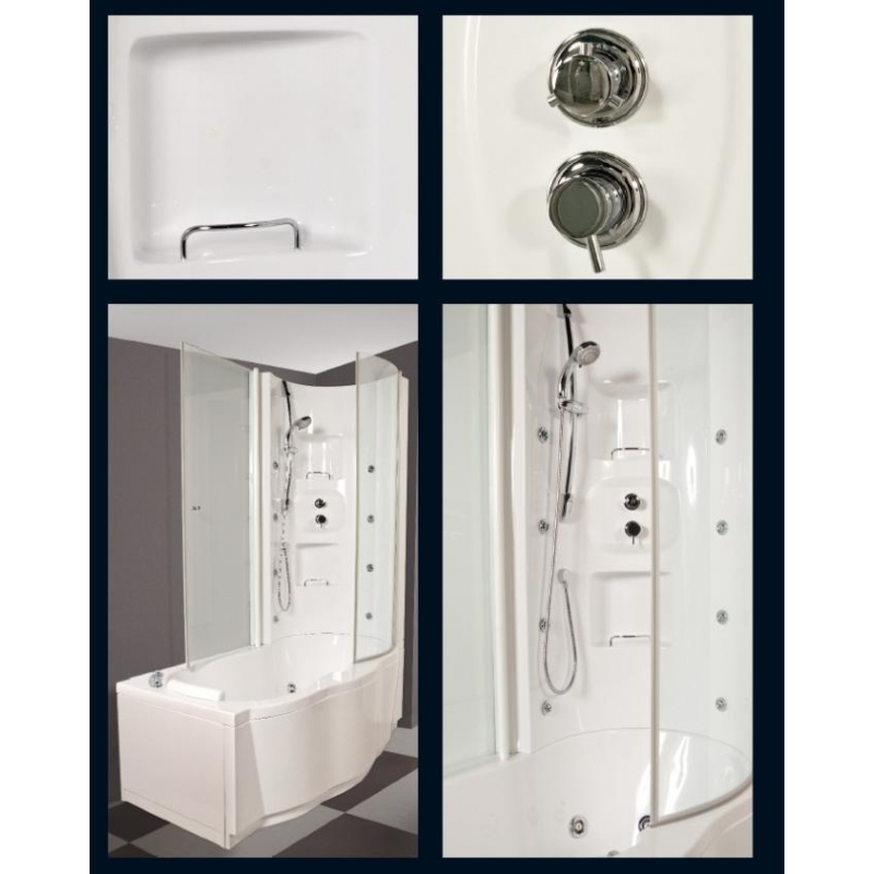 VASCA COMBINATA ISOLA DI BALI BIANCO CROMO PANNELLO FRONTALE E LATERALE CRISTALLO 6 MM