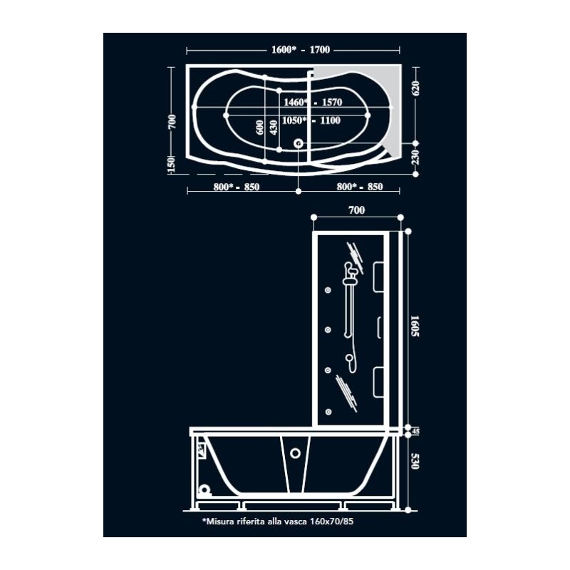 N.B. La foto è da considerarsi puramente indicativa. Rubinetteria, cuscino e profili cromo non compresi nel prezzo, da richiedere separatamente.