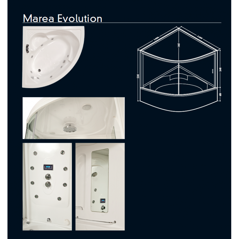 VASCA COMBINATA MAREA EVOLUTION CM 140X140 FINITURA BIANCO CROMO PANNELLO FRONTALE