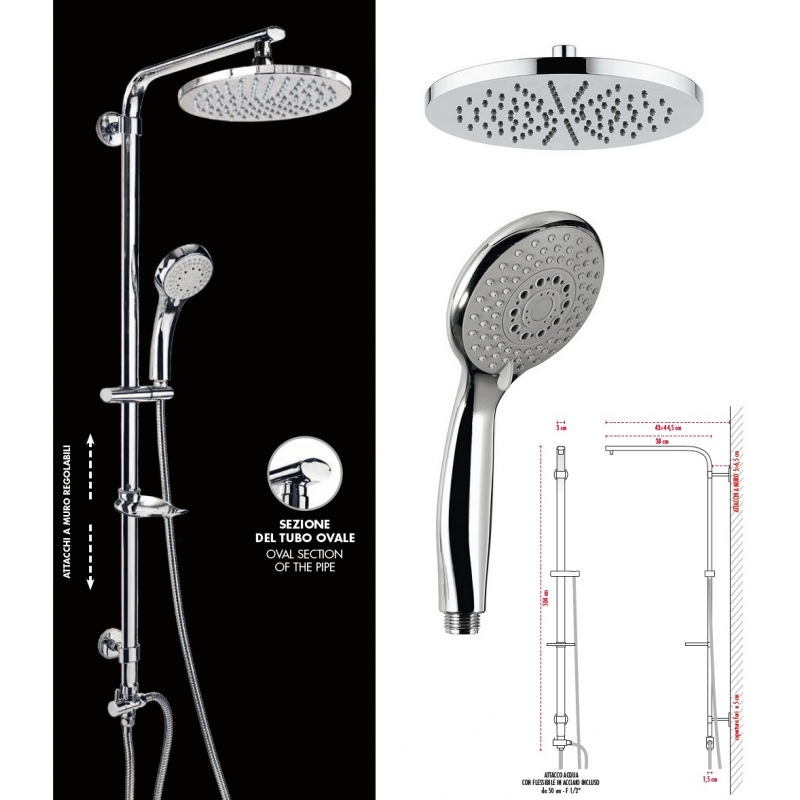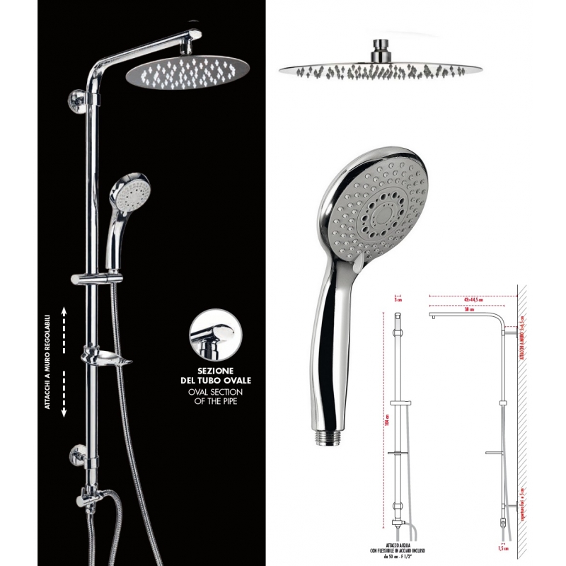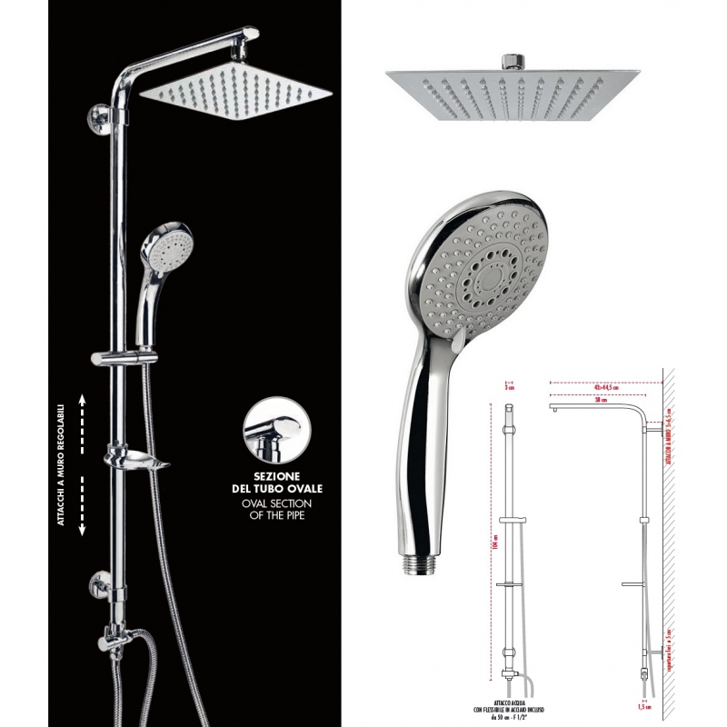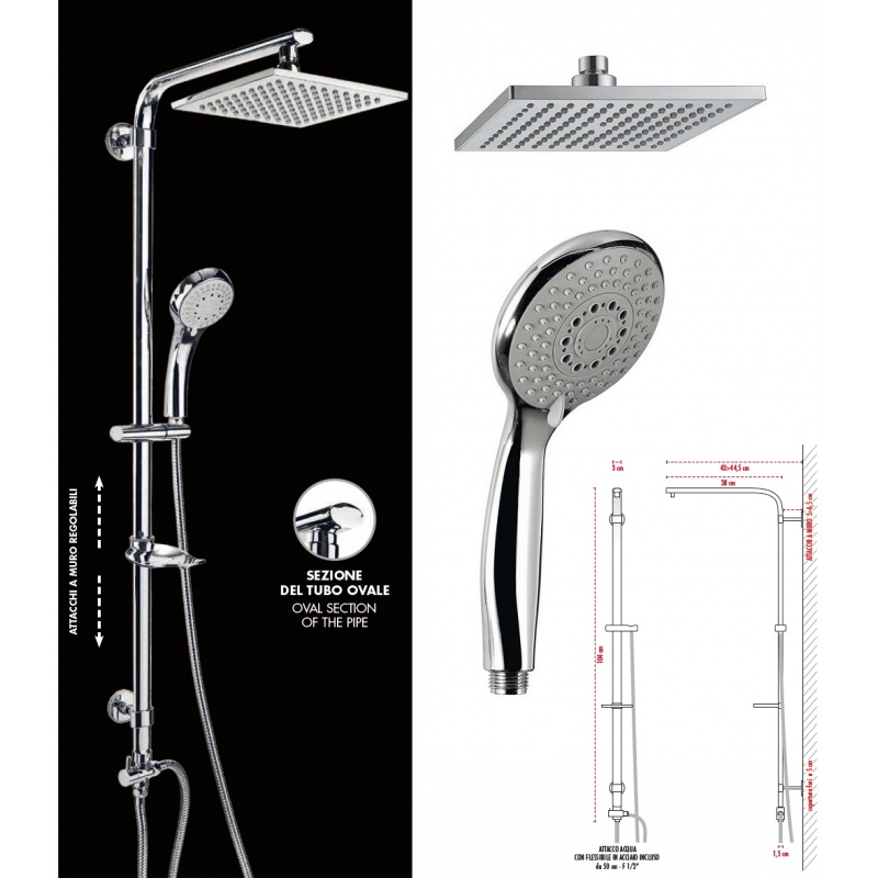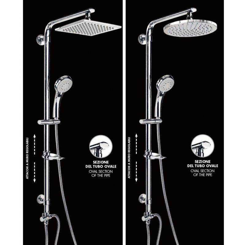 Colonna doccia in acciaio inox cromato con 2 punti di uscita d'acqua: