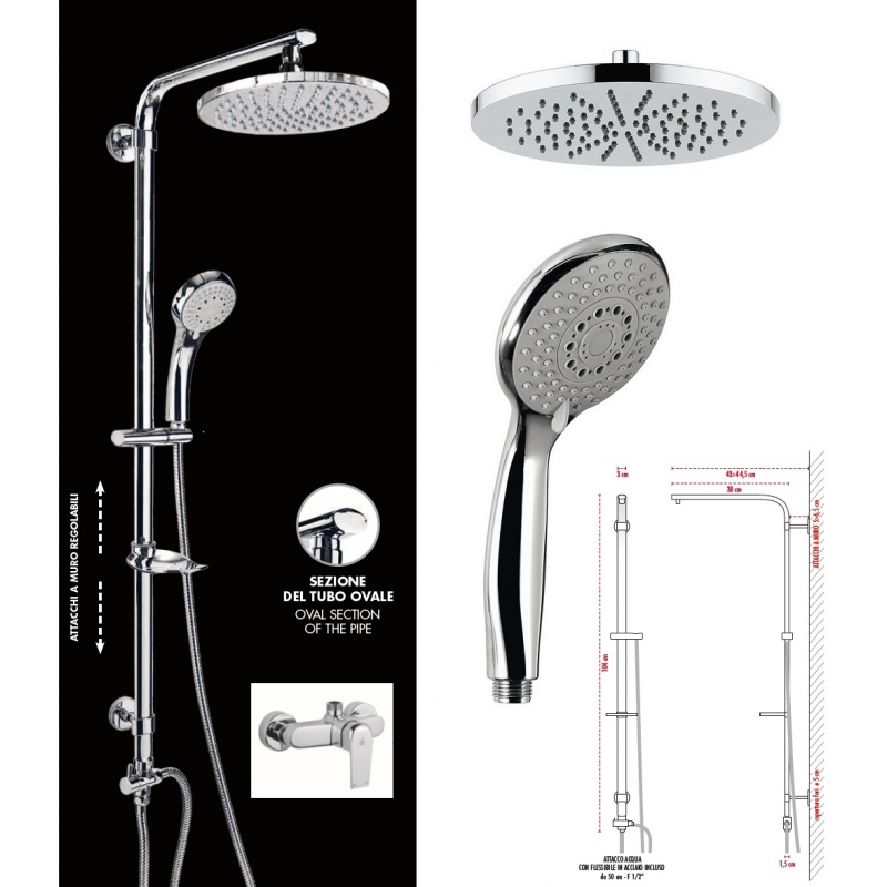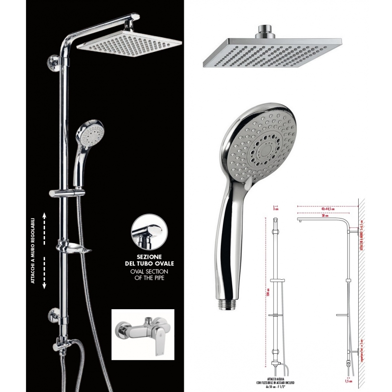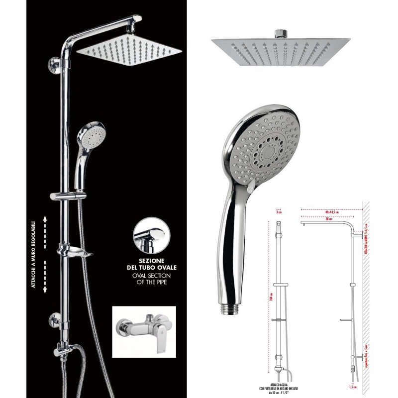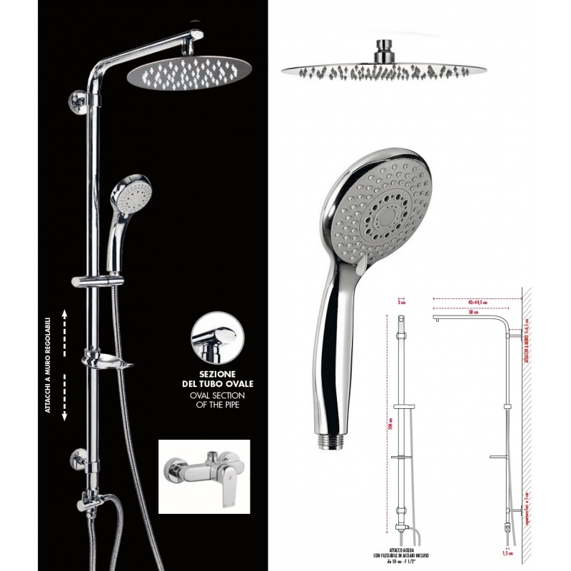 Colonna doccia in acciaio inox cromato con 2 punti di uscita d'acqua: