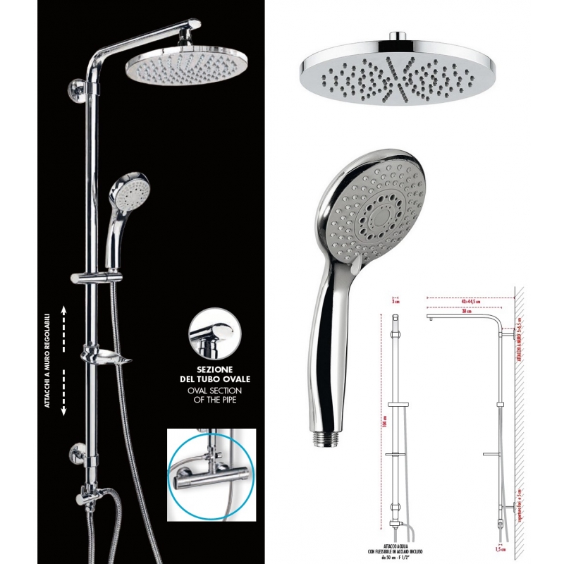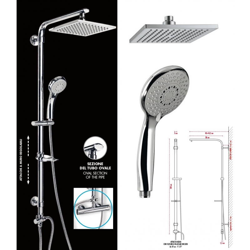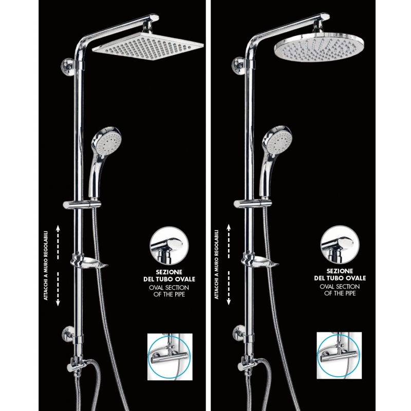 Colonna doccia in acciaio inox cromato con 2 punti di uscita d'acqua: