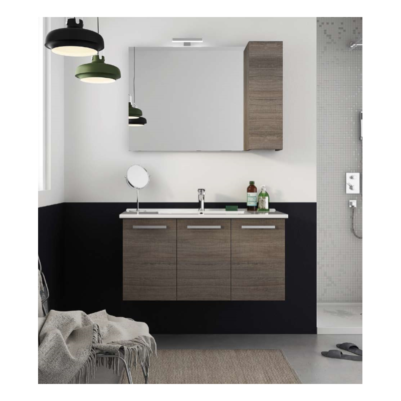 MOBILE BAGNO HARLEM H19 CM 97 BASE LAVABO CERAMICA SPECCHIO FILO LUCIDO LAMPADA LED PENSILE COLORAZIONE ROVERE TRANCHE' SCURO