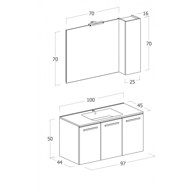 Nr. 1 Base porta lavabo 3 ante cm 97x44x50 (L X P X H)