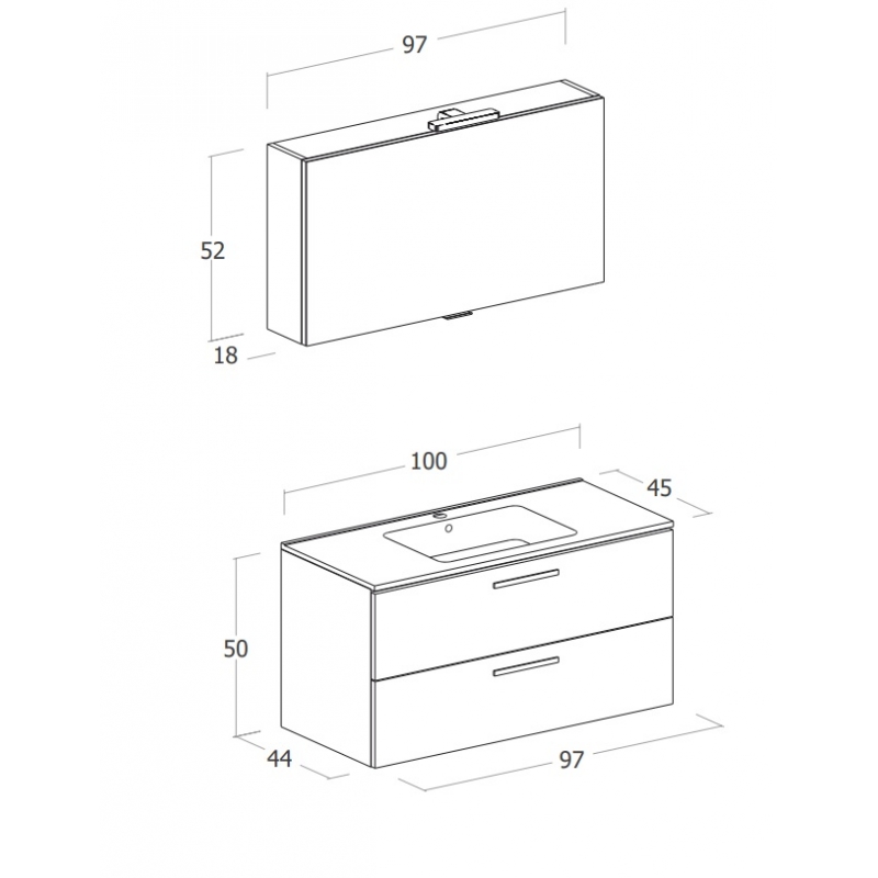 Nr. 1 Specchio contenitore 1 ribalta cm 97x18x52 (L X P X H)