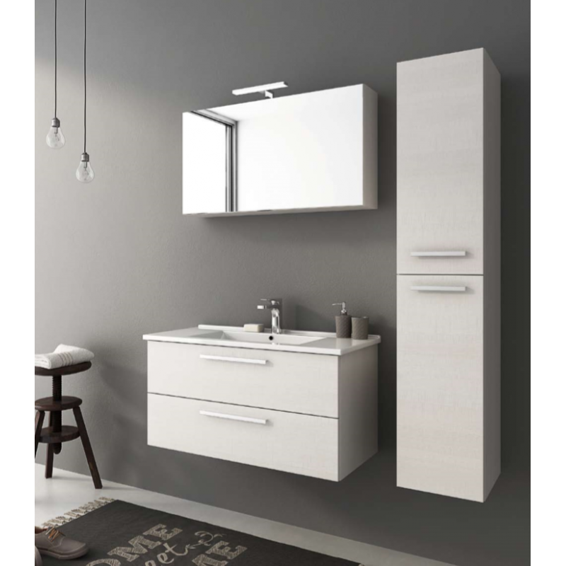 MOBILE BAGNO HARLEM H20 CM 97 BASE LAVABO CERAMICA CM 101 SPECCHIO CONONTENITORE LAMPADA LED COLONNA CM 32 COLORAZIONE ROVERE T