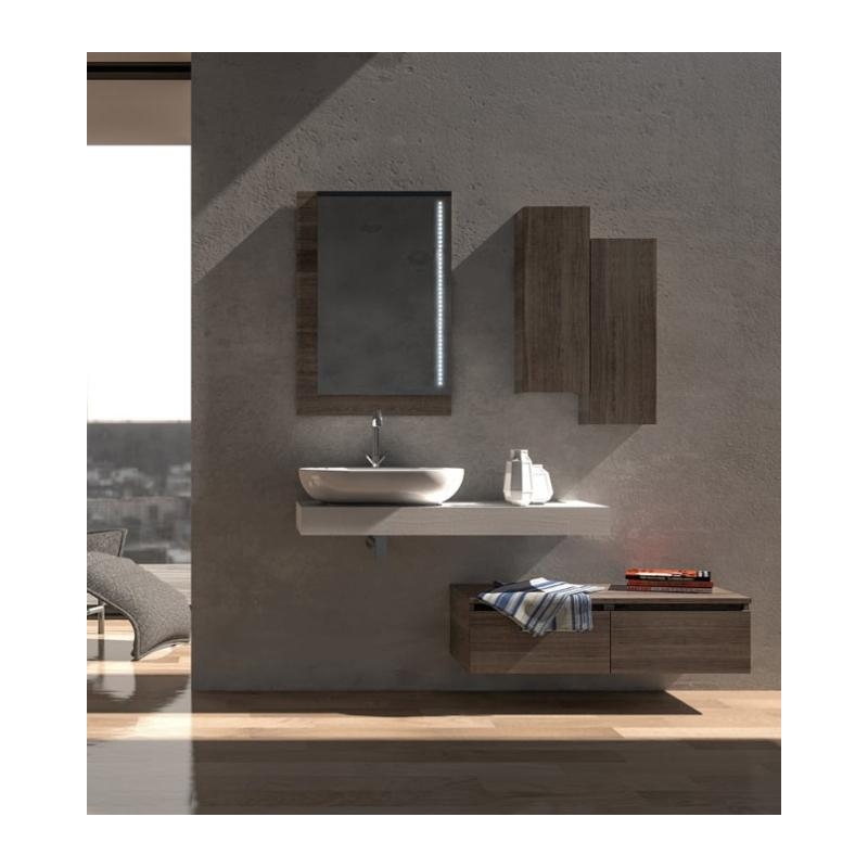 MOBILE BAGNO URBAN COMPONIBILE2 CM 150 TOP VELETTA LAVABO POLITEK BASE SPECCHIO CON FASCE LED 2 PENSILI COLORAZIONE ROVERE TRAN
