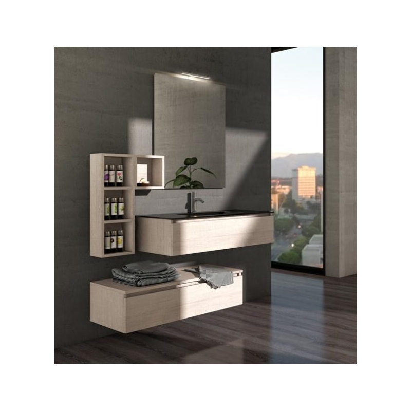MOBILE BAGNO URBAN COMPONIBILE3 CM 150 BASE LAVABO VETRO CASSETTIERA SPECCHIO FILO LUCIDO 2 PENSILI A GIORNO COLORAZIONE ROVERE