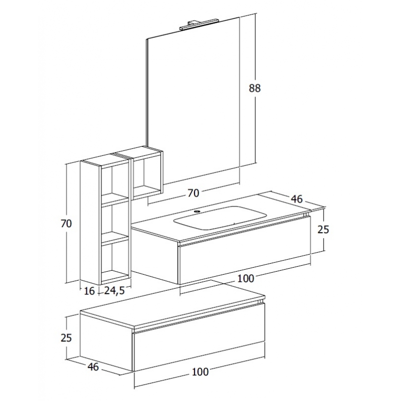 Nr. 1 Pensile a giorno cm 24,5x16x70 (L X P X H)