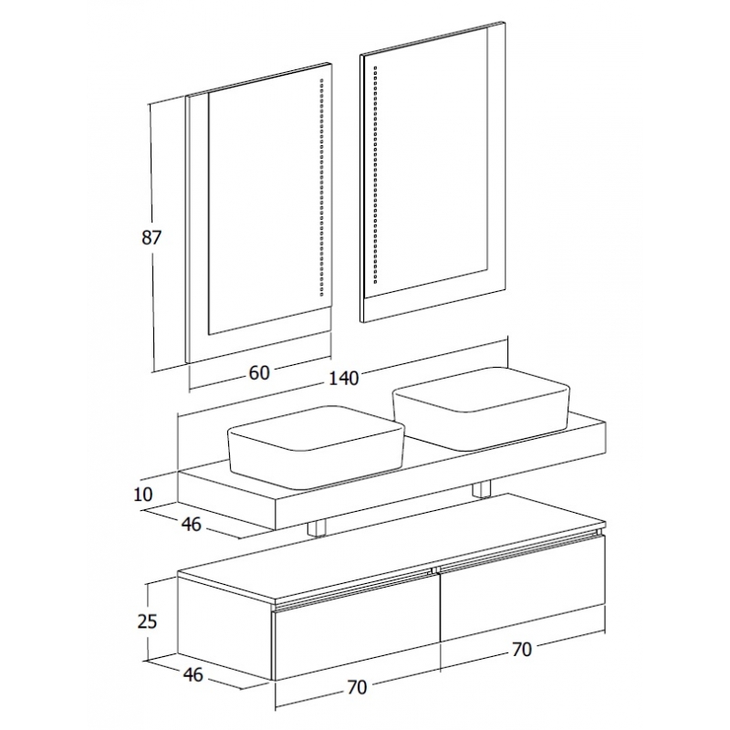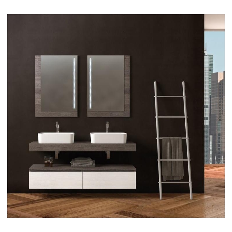 MOBILE BAGNO URBAN COMPONIBILE4 CM 140 TOP LEGNO 2 LAVABI CERAMICA BASE CONTENITORE 2 SPECCHI CON FASCE ILLUMINAZIONE LED COLO