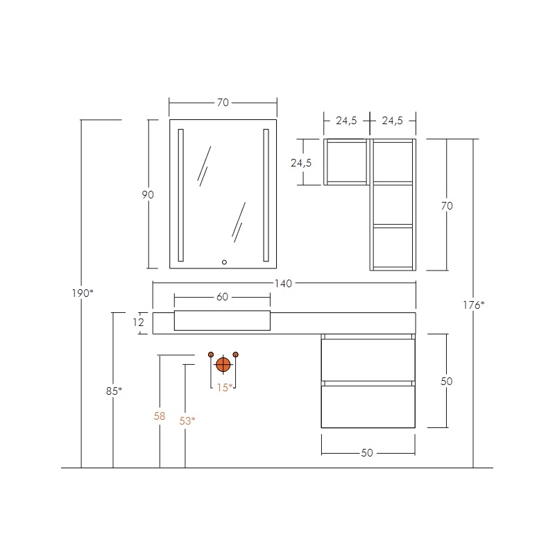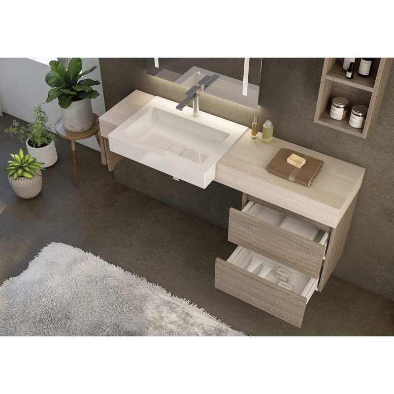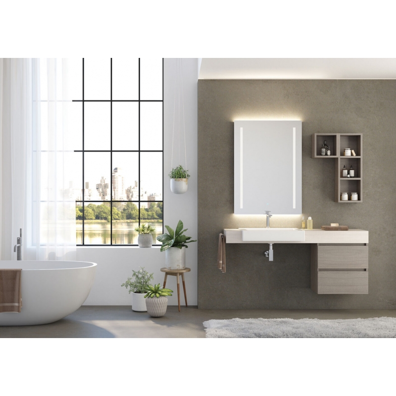 MOBILE BAGNO URBAN COMPONIBILE6 CM 140 TOP LEGNO LAVABO POLITEK BASE CASSETTI SPECCHIO FILO LUCIDO LAMPADA LED 3 PENSILI A GIOR