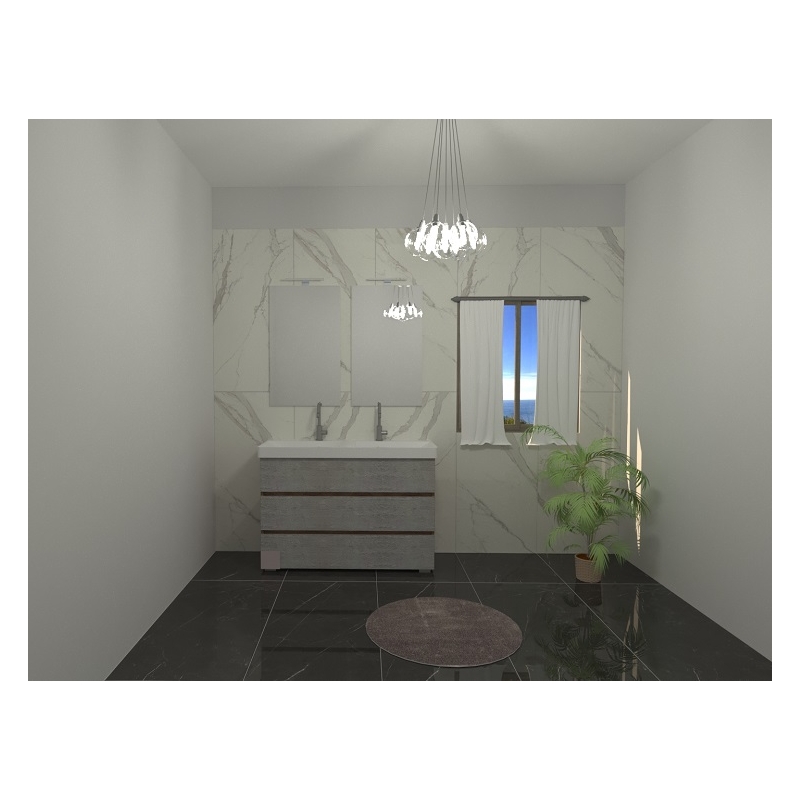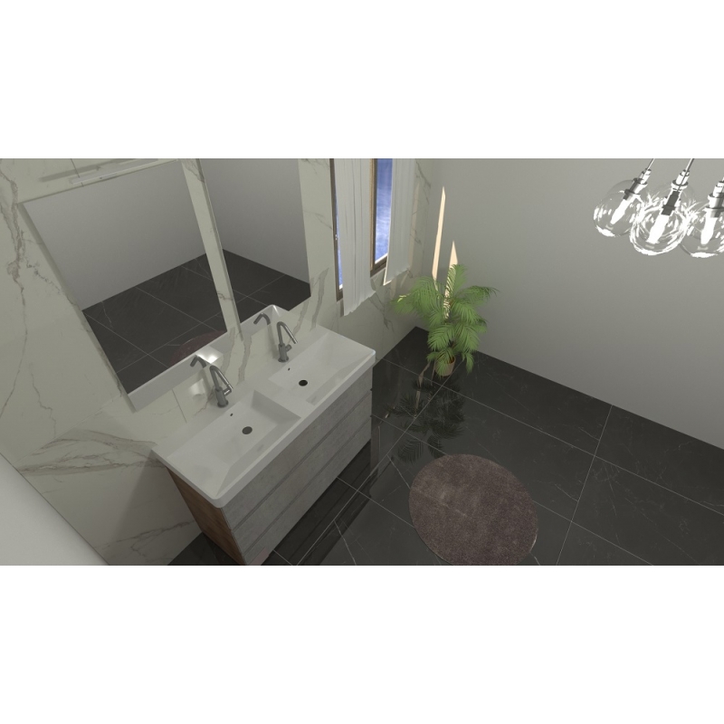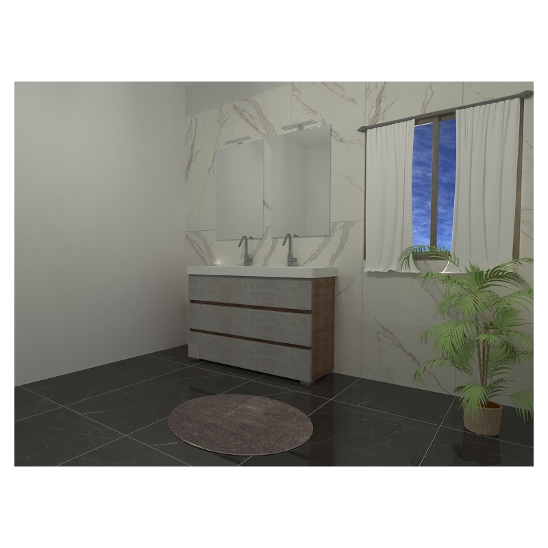 MOBILE BAGNO URBAN SOHO CM 120 BASE 3 CASSETTI LAVABO DOPPIO CERAMICA 2 SPECCHI FILO LUCIDO LAMPADA LED COLORAZIONE ROVERE NODAT