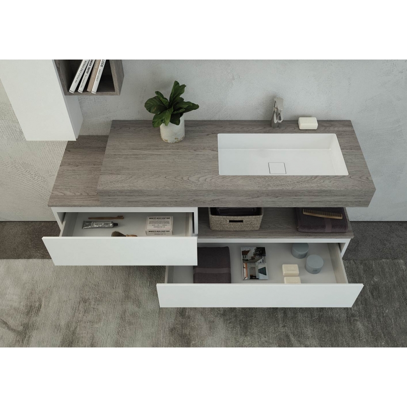 MOBILE BAGNO FREEDOM F26 ROVERE GESSATO GRIGIO BIANCO LACCATO OPACO LARGHEZZA CM 170 PROFONDITA' CM 50