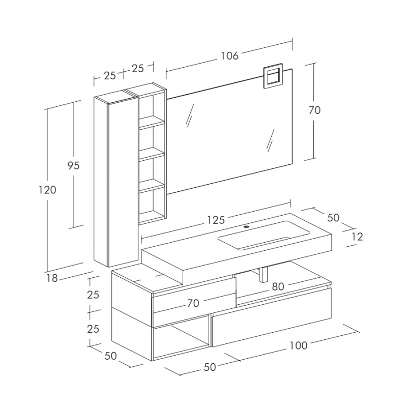 Nr. 1 Base contenitore 1 cassetto H 25 x L 100 cm