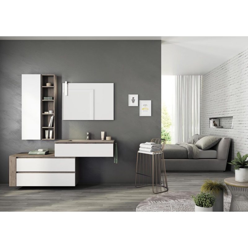 MOBILE BAGNO FREEDOM F29 ROVERE TERRA BIANCO LACCATO OPACO LARGHEZZA CM 177 PROFONDITA' CM 50
