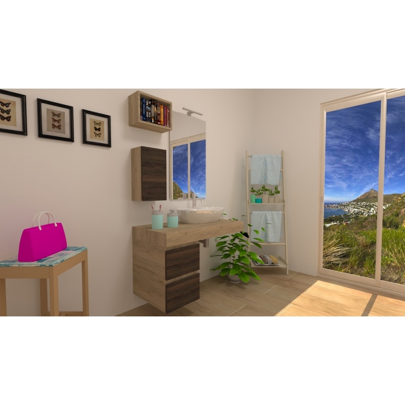 MOBILE BAGNO FREEDOM MONTI TOP VELETTA LAVABO CERAMICA BASE 2 CASSETTI SPECCHIO FILO LUCIDO LAMPADA LED PENSILE A GIORNO PENSIL